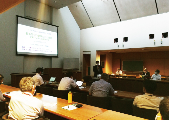 近年の自然災害を例に挙げ、今後プロフェッショナルな土木技術者は、近年の土木災害に伴う被害を招く恐れのある「災害の暗示、示唆」を見逃さないような観察眼、センス、感性を身に着ける必要性があるとお話しされていました。その後、地盤災害に関心の高い企業の方々から積極的な質疑応答が繰り広げられました。